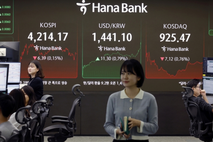 2025년 국내 증시 폐장일인 30일 오후 서울 중구 하나은행 본점 딜링룸 전광판에 증시 종가가 표시되고 있다. 이날 코스피는 전 거래일 대비 6.39포인트(0.15%) 하락한 4,214.17, 코스닥은 7.12포인트(0.76%) 하락한 925.47으로 장을 마쳤다. 오후 3시 30분 서울외환시장에서 달러·원 환율은 상승세를 보이고 있다. 2025.12.30/뉴스1 Copyright (C) 뉴스1. All rights reserved. 무단 전재 및 재배포, AI학습 이용 금지. /사진=뉴스1 |