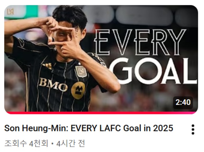 LAFC는 30일(한국시간) 공식 SNS에 2025년 손흥민 골 모음 영상을 게시했다. 골 장면만 짧게 짧게 편집하여 쉽게 볼 수 있게 했는데도 2분 40초의 길이였다.