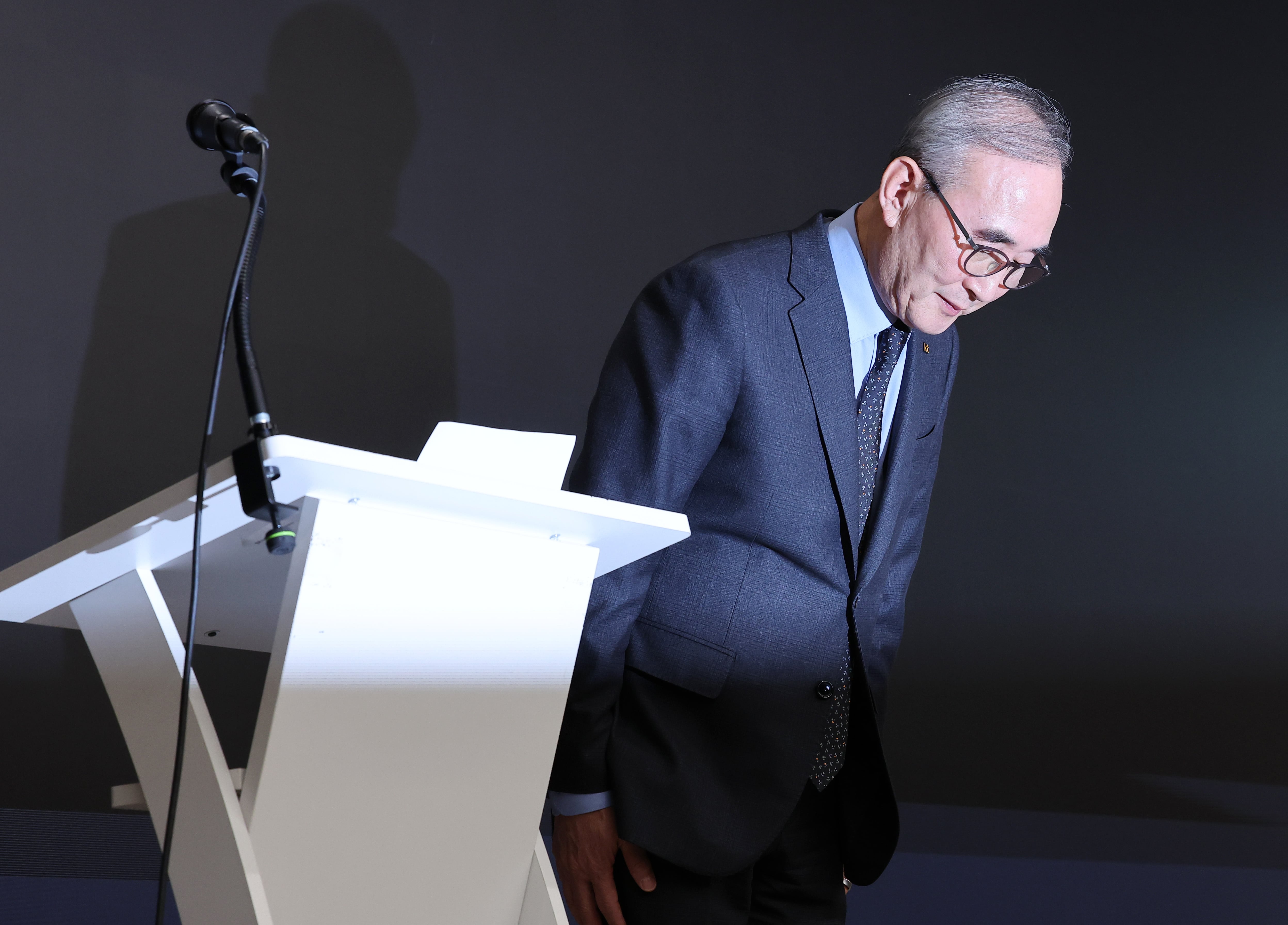 김영섭 KT 사장이 30일 서울 종로구 광화문 사옥에서 열린 무단 소액결제 사태 및 해킹 사고 등과 관련한 브리핑을 마친 뒤 인사하고 있다./뉴스1