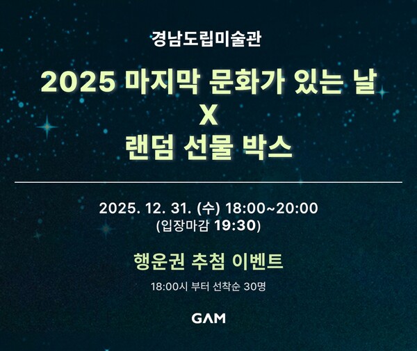(더쎈뉴스 / The CEN News 이혜주 기자) 경남도립미술관이 2025년의 마지막 날을 문화와 예술로 따뜻하게 마무리할 수 있는 특별한 이벤트를 준비했다.
