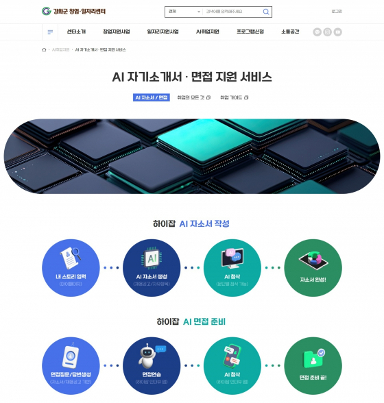 강화군 창업·일자리센터가 공공 취업지원 플랫폼에 AI(인공지능) 기반 자기소개서·면접 서비스를 연계해 운영에 나섰다.