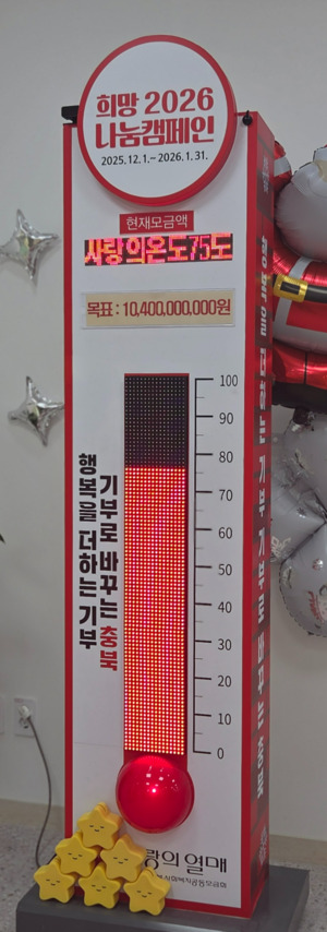 '희망2026 나눔캠페인' 난항78억 모여 목표액 75% 수준내년 1월 31일까지 모금 지속 사랑의온도탑,희망나눔캠페인,모금액,기부