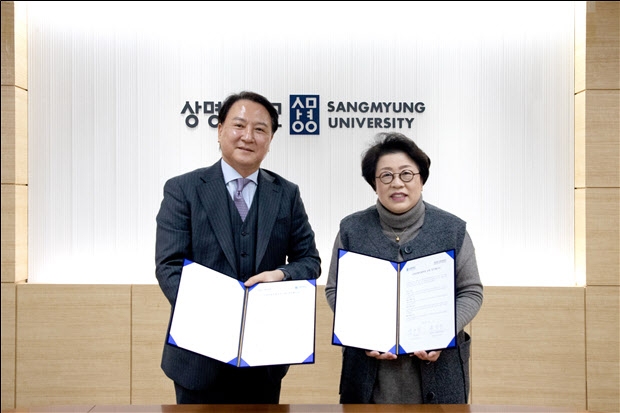 문성천(왼쪽) 세화문화재단 이사장과 김종희 상명대 총장이 업무협약을 마친 뒤 기념촬영을 하고 있다. 사진=재단법인 세화문화재단 |