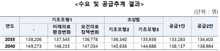 의료 이용 적정화 등 보건의료 정책 변화를 고려한 시나리오를 적용할 경우 수요는 2035년 13만 6778명, 2040년 14만 7034명으로 각각 나타났다.