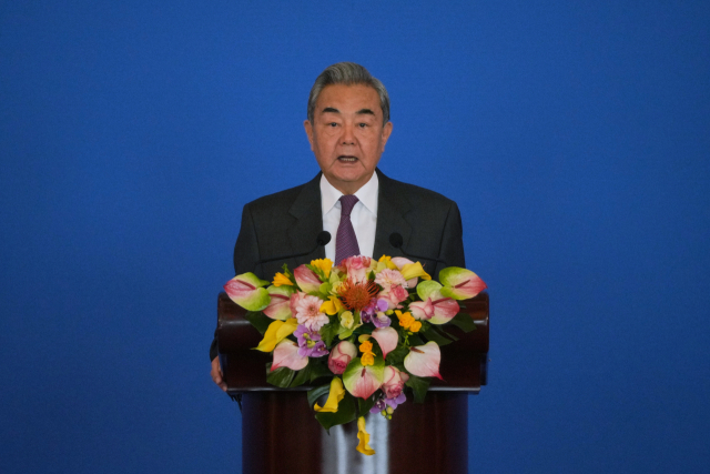 ▲ 왕이 중국 외교부장 겸 국무위원이 중국 수도 베이징 댜오위타이(釣魚臺) 국빈관에서 열린 '2025년 국제 형세와 중국 외교 심포지엄'에서 기조연설을 하고 있다. ⓒAP=연합뉴스 |