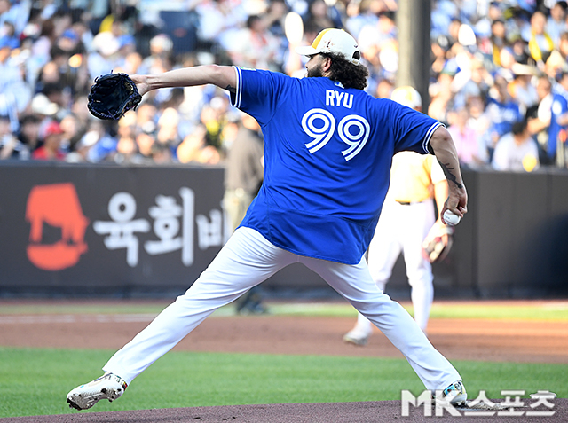 ‘2025 KBO 올스타전’이 7월 12일 대전 한화생명볼파크에서 열렸다. 나눔 선발 폰세가 류현진의 메이저리그 토론토 유니폼을 입고 투구하고 있다. 사진=천정환 기자 |
