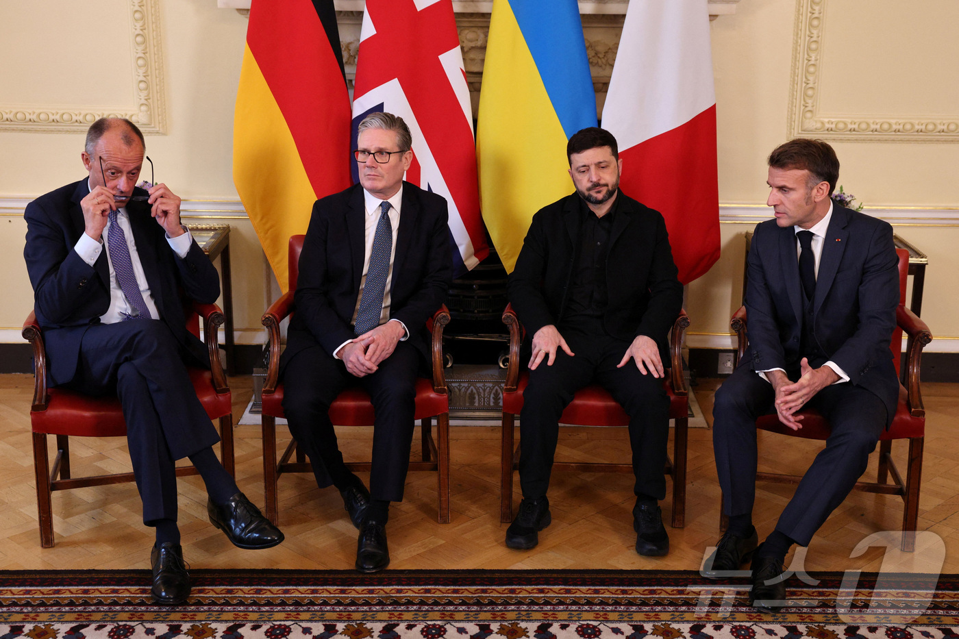 프리드리히 메르츠 독일 총리(왼쪽부터)와 키어 스타머 영국 총리, 볼로디미르 젤렌스키 우크라이나 대통령, 에마뉘엘 마크롱 프랑스 대통령이 8일(현지시간) 영국 런던 다우닝가 10번지에서 우크라이나 전쟁 대책을 논의하기 위해 비공개 회담에 들어갔다. 2025.12.8 ⓒ 로이터=뉴스1 ⓒ News1 김경민 기자 |