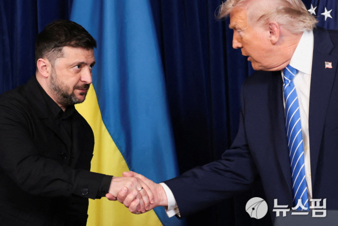 악수하는 볼로디미르 젤렌스키 우크라이나 대통령(왼쪽)과 도널드 트럼프 미국 대통령. [사진=로이터 뉴스핌] |