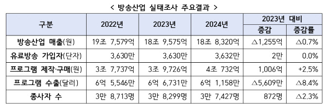 방송사업 전체 매출 18조 8320억 원…전년比 0.7%↓