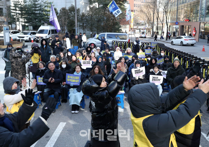 [이데일리 김태형 기자] 31일 서울 종로구 주한일본대사관 인근에서 열린 제1733차 '일본군성노예제 문제해결을 위한 정기 수요시위'에서 참가자들이 공연을 펼치고 있다.