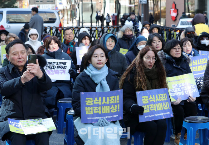 [이데일리 김태형 기자] 31일 서울 종로구 주한일본대사관 인근에서 열린 제1733차 일본군성노예제 문제해결을 위한 정기 수요시위에서 참가자들이 팻말을 들고 집회에 참석하고 있다.