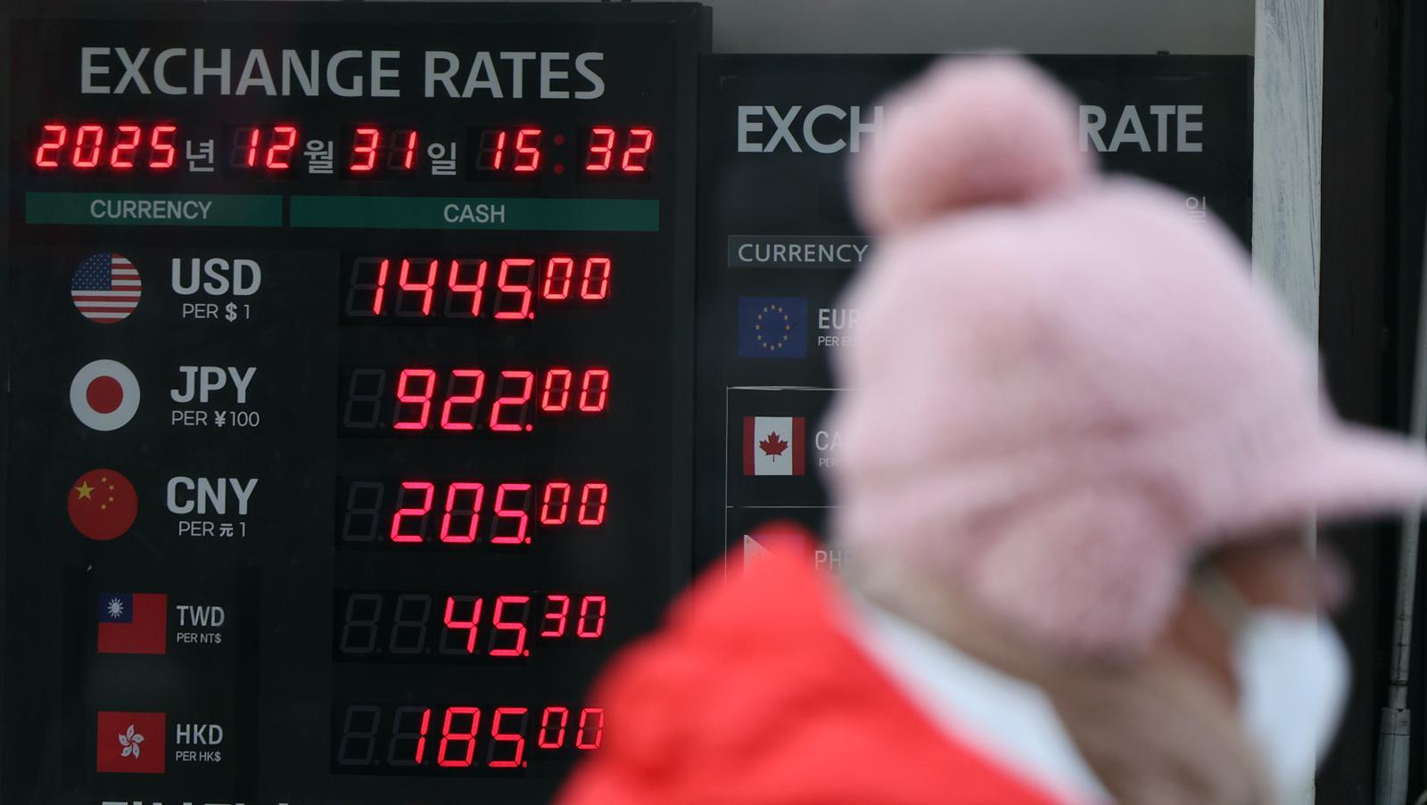 31일 서울 중구 명동의 한 환전소 앞 전광판에 환율이 표시되고 있다. 지난 30일 서울 외환시장에서 달러·원 환율은 주간 종가(오후 3시 30분) 기준 전 거래일 대비 9.2원 오른 1439.0원에 올해 마지막 거래를 마감했다. 주간 종가 기준 연평균 환율은 역대 최고치를 기록했다. 이날까지 연평균 환율은 1421.96원으로 지난 1998년(1394.9원) 기록을 넘어선 역대 최고치다. 2025.12.31/뉴스1 |