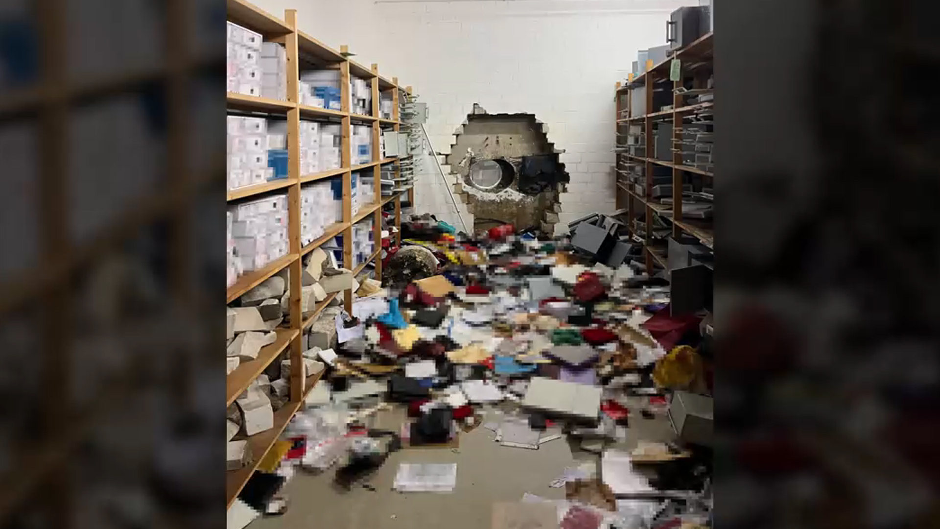 벽에 커다란 구멍이 뚫렸고 바닥은 난장판이 됐습니다.
