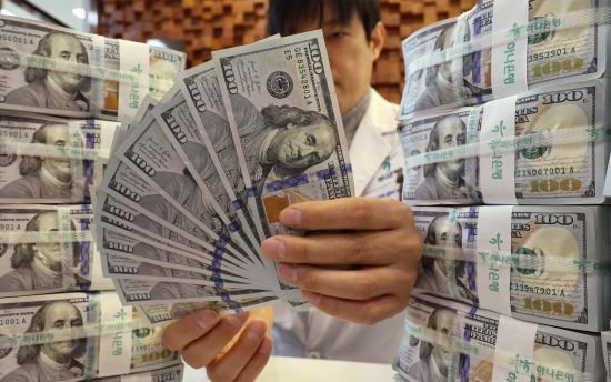 서울 중구 하나은행 위변조대응센터에서 직원이 달러화를 정리하고 있다. 연합뉴스 |