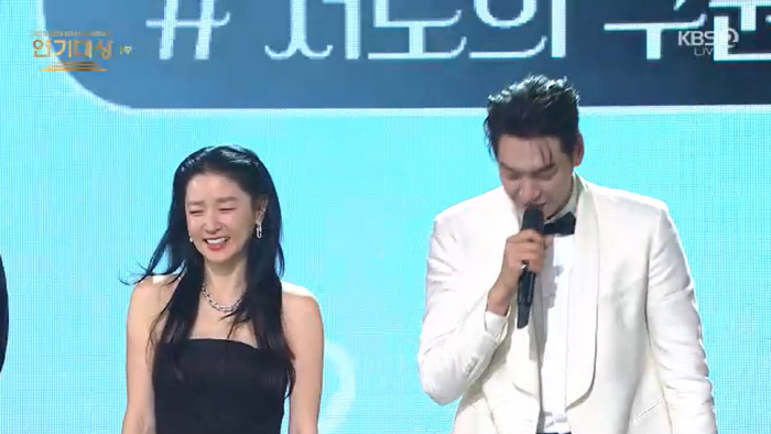 김영광과 함께 베스트 커플상을 수상한 이영애는 "대본대로 재미있게 했다. 보신 분은 아시겠지만 영광씨가 너무 잘해주셔서 현장도 재밌고 즐거웠다"며 "베스트 커플상에 다 달달한 멜로 분위기인데 저희는 그런 달달한 분위기가 아닌데도 뽑아주셔서 감사하다"고 인사했다. 김영광 역시 "이영애 선배님과 수상을 했다는 게 영광스럽다. 감사하다"고 소감을 밝혔다.