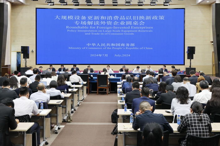 [서울=뉴시스] 중국 베이징 상무부 청사에서 링지 부부장(차관) 겸 국제무역협상 부대표 주재로 ‘대규모 설비 경신과 소비재 신구교체 관련 외자기업 원탁회의’가 개최되고 있다. <사진출처: 중국 상무부 사이트> 2026.01.01 |