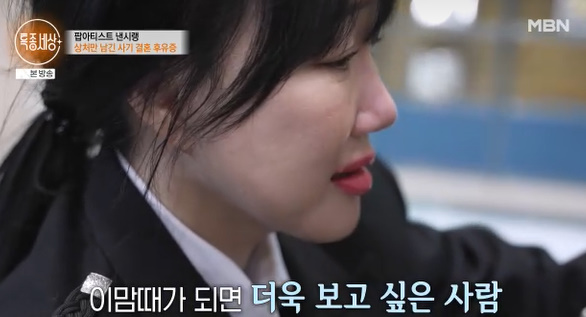 무엇보다 올해 모친이 세상을 떠난 지 벌써 15년이 됐다는 낸시랭. 그래서일까. 낸시랭은 “8년 전, 빨리 가정을 이루고 싶었던 마음도 그 그리움 때문이었을지 모른다”고 조심스럽게 털어놓았다.친구를 만난 뒤, 그는 어머니를 모신 봉안당으로 향했다. 명절과 성탄절이 다가올 때마다 마음이 더 허전해진다고 해 안타까움을 안기기도.