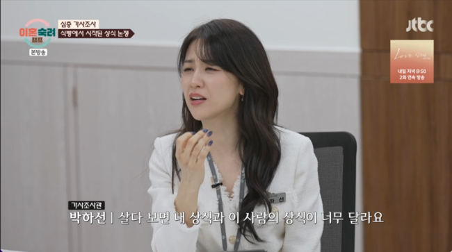 스튜디오에서 이를 지켜보던 MC 박하선은 깊은 탄식과 함께 적극적으로 공감하며 본인의 속내를 털어놨다. 박하선은 “살다 보면 내 상식과 이 사람의 상식이 너무 다르다”며 입을 뗐다.