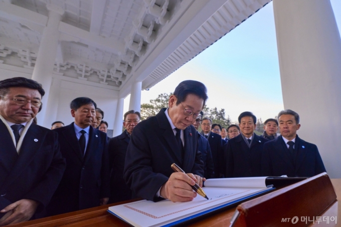 [서울=뉴시스] 이재명 대통령이 새해 첫 날인 1일 서울 동작구 국립서울현충원 현충탑 참배를 마치고 방명록을 작성하고 있다. (사진=청와대 제공) 2026.01.01. photo@newsis.com *재판매 및 DB 금지 /사진= |