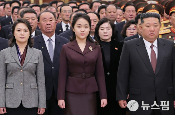 박새암 강남대 특임교수는 2일 뉴스핌과의 통화에서 "품격 있는 색조로 간주되는 버건디 투피스 정장 차림을 한 김주애를 메인 컬러로 해서 김정은 부부를 양 옆에 배치하고 넥타이와 스카프로 통일성을 줬다"며 "누가 봐도 주애가 이 자리의 주인공임을 각인시키려는 것"이라고 말했다.
