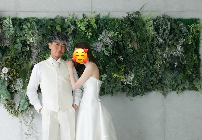 그가 공개한 결혼 사진에서 그는 현역시절과 비슷한 짧은 머리에 콧수염까지 기른 건장한 남성의 모습으로 활짝 웃고 있었다.
