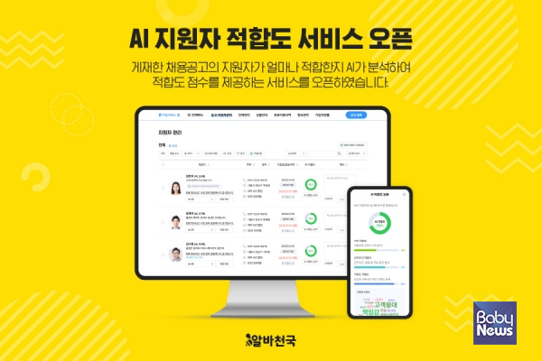 구인·구직 아르바이트 전문 포털 알바천국(대표이사 우태경)이 기업회원이 채용 효율을 높일 수 있는 'AI 지원자 적합도'를 오픈했다고 2일 전했다.