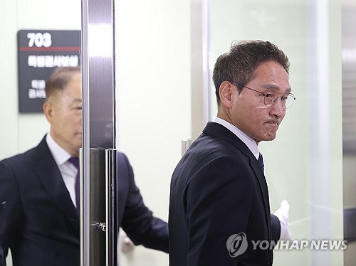 (서울=연합뉴스) 신준희 기자 =. 관봉권 띠지 폐기 의혹'과 '쿠팡 퇴직금 불기소 외압 의혹'을 수사할 안권섭 특별검사가 6일 서초구 사무실에서 열린 특검팀 현판식을 마치고 퇴장하고 있다. 2025.12.6 hama@yna.co.kr |
