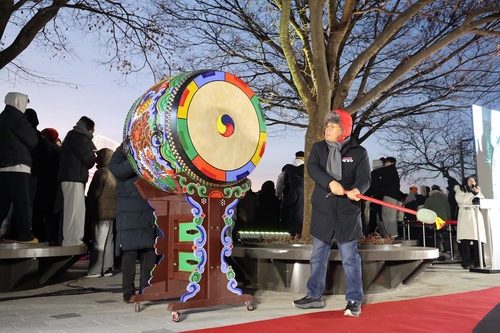 '소원의 북'을 치며 새해 시작을 알리는 박강수 구청장 |