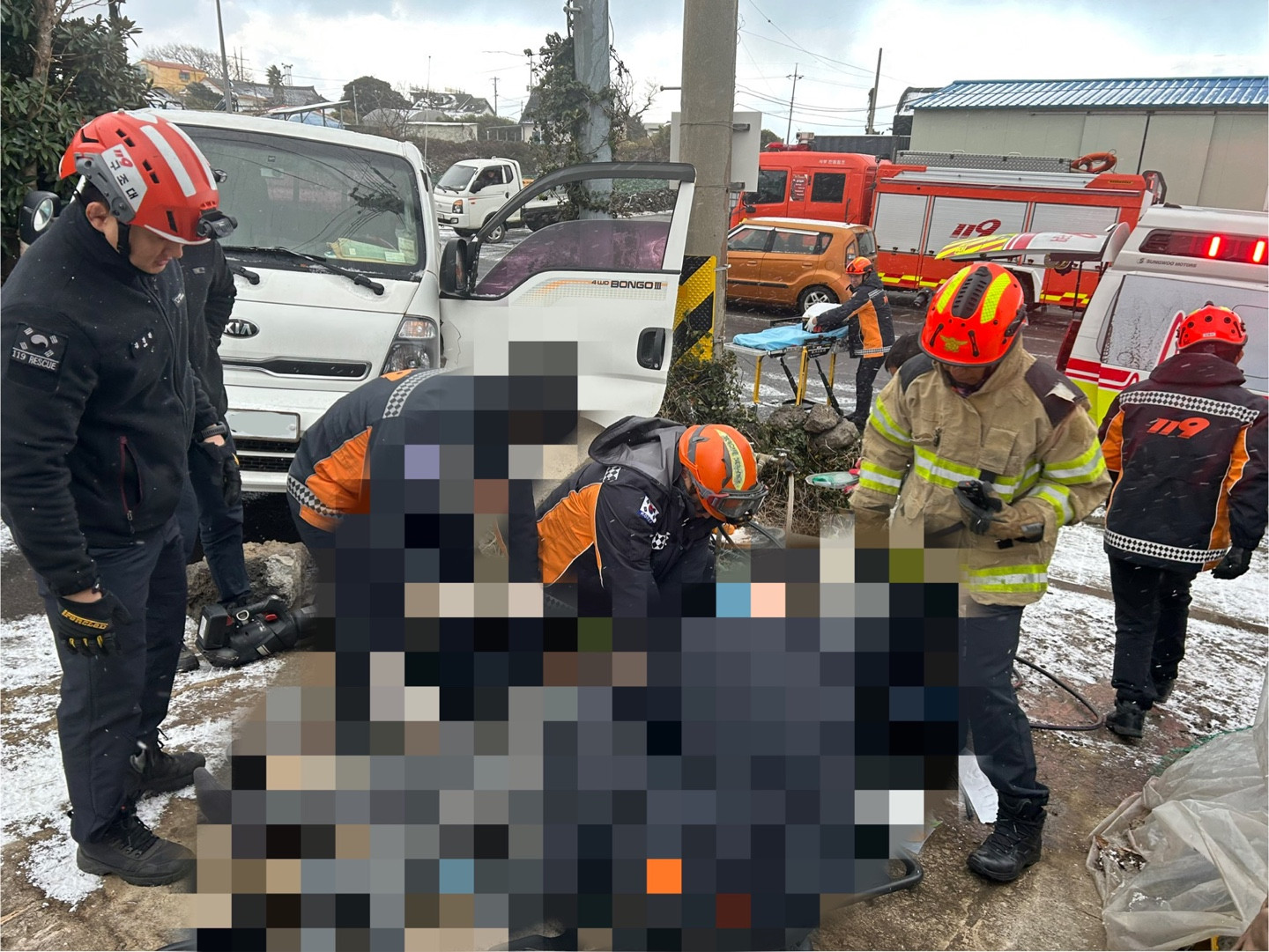 오늘(2일) 아침 9시쯤에는 제주시 한림읍의 한 도로에서 1t 화물차가 눈길에 미끄러져 돌담에 부딪히는 사고가 발생해 70대 운전자가 심정지 상태로 구조돼 병원으로 이송됐습니다.