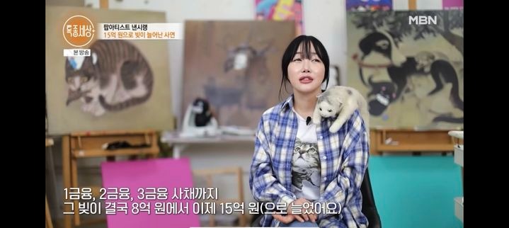 1, 2, 3금융권은 물론 사채까지 손을 댔다고 밝힌 낸시랭은 "결국 빚이 8억원에서 15억원이 됐다"고 전했다. 중고 거래로 생활비를 충당하고 있으며, "개인전에서 좋은 성과를 내도 빚 이자가 너무 크고 최저 생계비도 필요하다. 테이블, 시계, 앤티크 가구 다 판다"고 말했다.