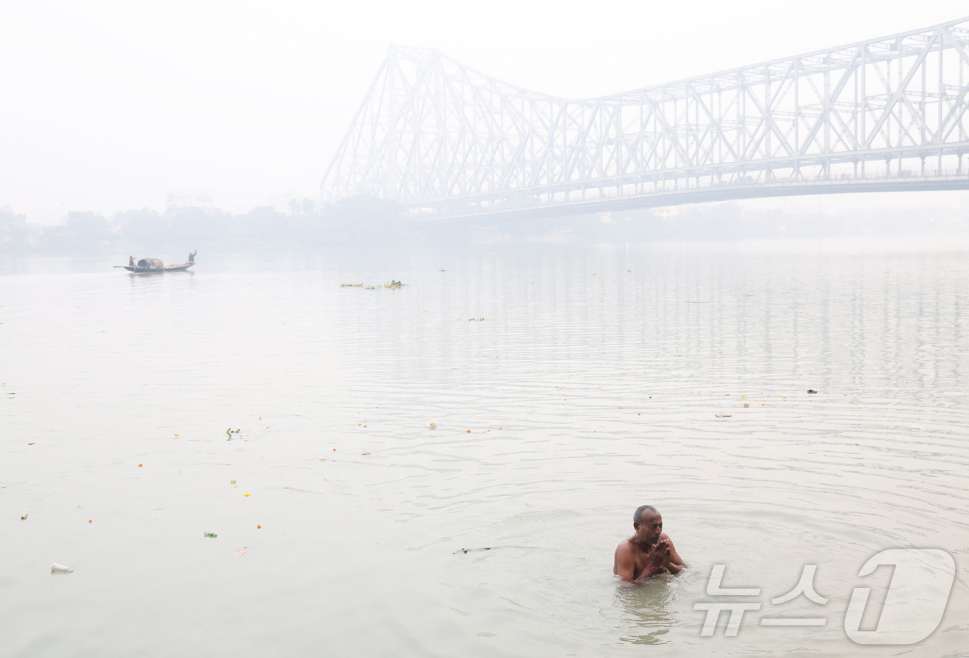 지난해 12월 8일 인도 콜카타 갠지스강 유역에서 한 남성이 강물에 몸을 담그고 기도를 하고 있 다. 2025.12.8 ⓒ 로이터=뉴스1 ⓒ News1 강민경 기자 |