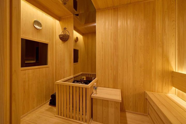 목재로 마감된 사우나 내부에는 스토브와 벤치, 모래시계 등이 비치됐으며 한쪽 벽면에는 TV가 설치된 모습도 확인됐다.