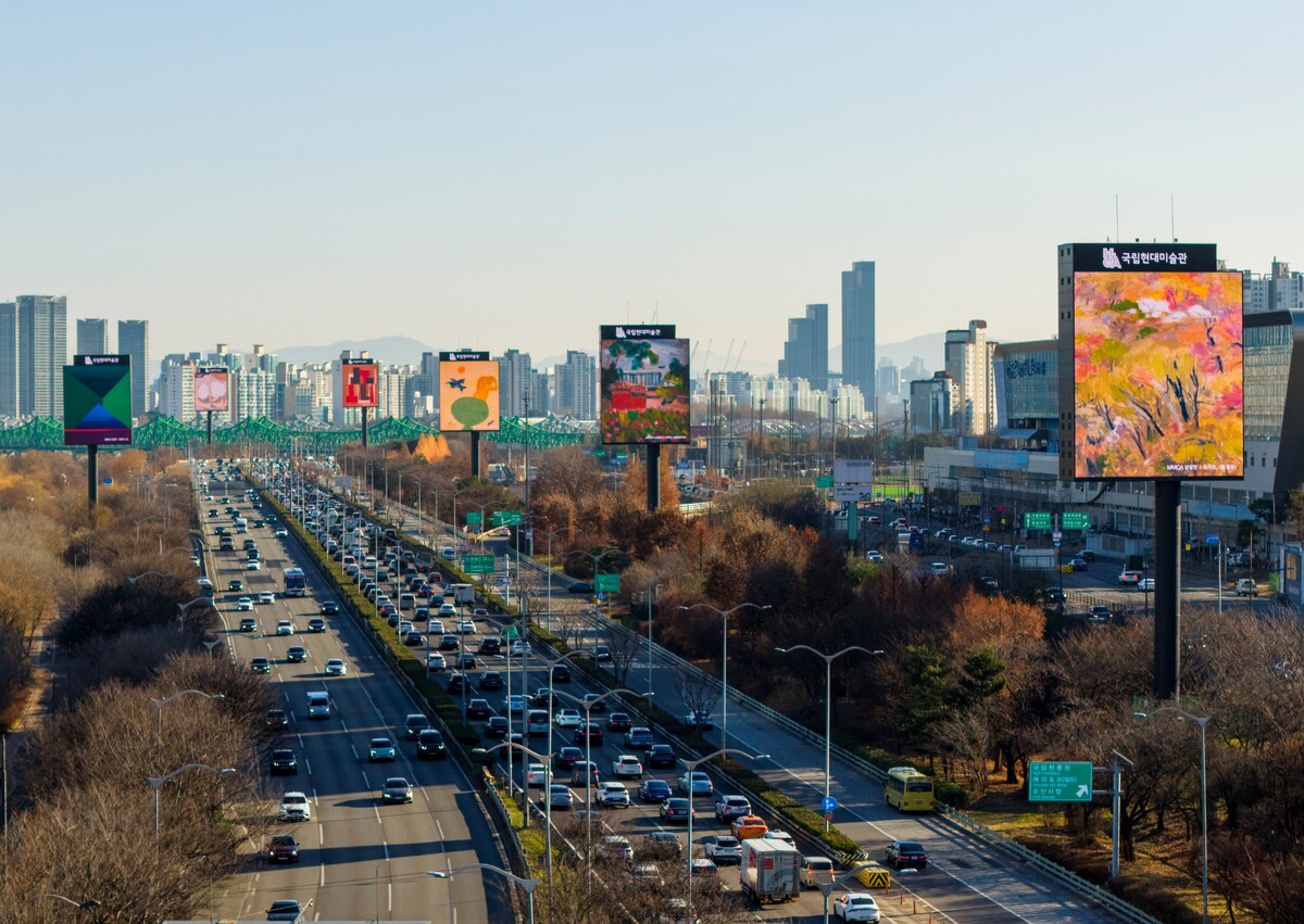 국립현대미술관은 이 구간을 통해 상설전에 출품 중인 회화 명작 소장품 6점을 새롭게 선보인다. 지난해 7월 대형 디지털 전광판 6기로 구성된 올림픽대로 디지털존을 공식 런칭한 이후, 한국지방재정공제회와의 제휴로 미술관 캠페인 ‘지금 여기, 국립현대미술관’을 지속 전개해왔다.