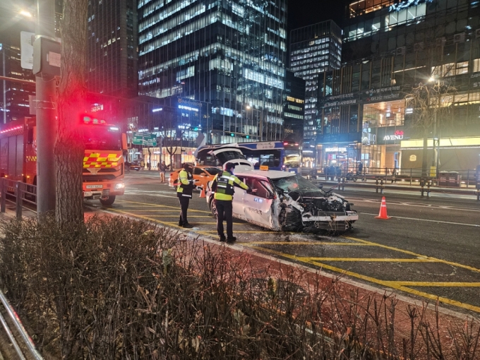 실제로 사고 현장 인도에는 유리 파편이 사방에 흩어졌다. 사고를 낸 택시는 갓길에 세워졌고, 차량 앞쪽은 형체를 알아보기 어려울 정도로 찌그러졌다. 사고 발생 시점에서 2시간이 지났는데도 탄 냄새가 났다. 택시는 전기차였다. 소방·경찰 인력 53명과 소방차 16대가 투입돼 사고 현장을 수습했다.