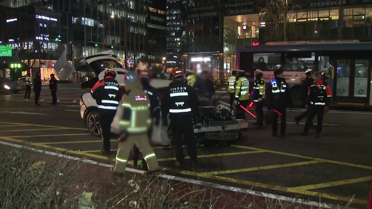 [사고 목격자 (어제) : 사고 소리 '쿵', '쾅'하는 박살 나는 소리가 워낙 커서요. (사고 차량에서) 흰 연기가 계속 나왔기 때문에 소방 관계자들이 불을 끄고….]