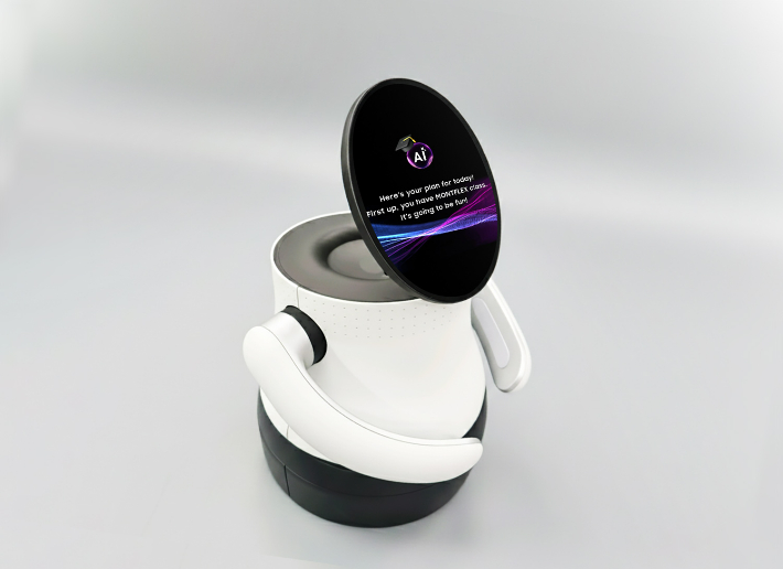 그 핵심 제품 가운데 하나인 'AI OLED 봇'은 얼굴 위치에 13.4인치 OLED를 탑재한 소용 콘셉트 AI 로봇으로, 지정 공간을 이동하며 사용자와 소통할 수 있다. 이번 전시에서는 대학에서 학생들에게 강의실 위치를 안내하거나 교수 정보, 과제 내용, 휴강 계획 등을 제공하는 '로봇 조교' 역할을 할 예정이다.