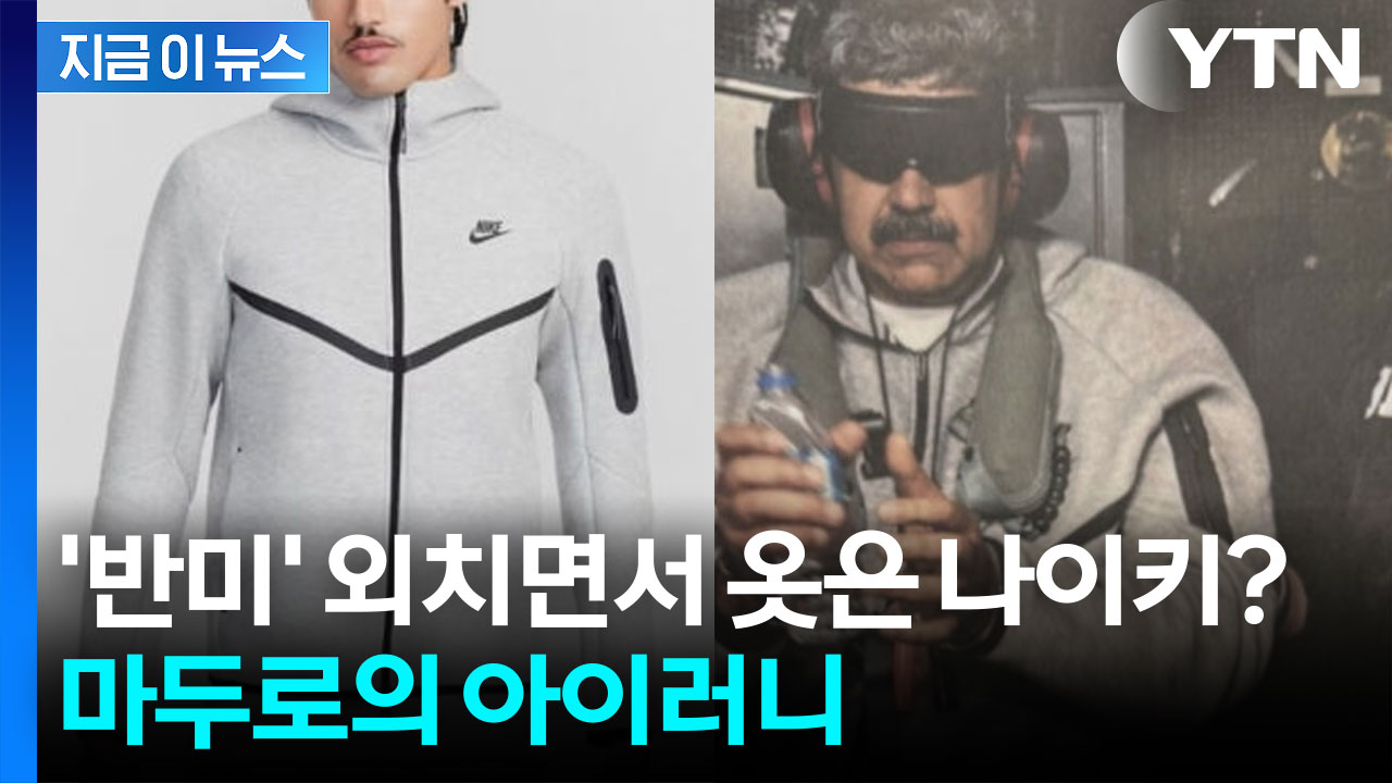 사진 속 마두로 대통령은 회색 나이키 트레이닝복 차림에 얼굴에는 눈가리개와 헤드폰을 한 채 양손에 수갑을 차고 오른손에 생수병을 들고 있습니다.