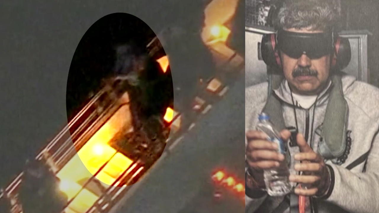 눈가리개와 헤드폰으로 눈과 귀를 가린 채 수갑을 찬 마두로 대통령의 사진도 공개했습니다.