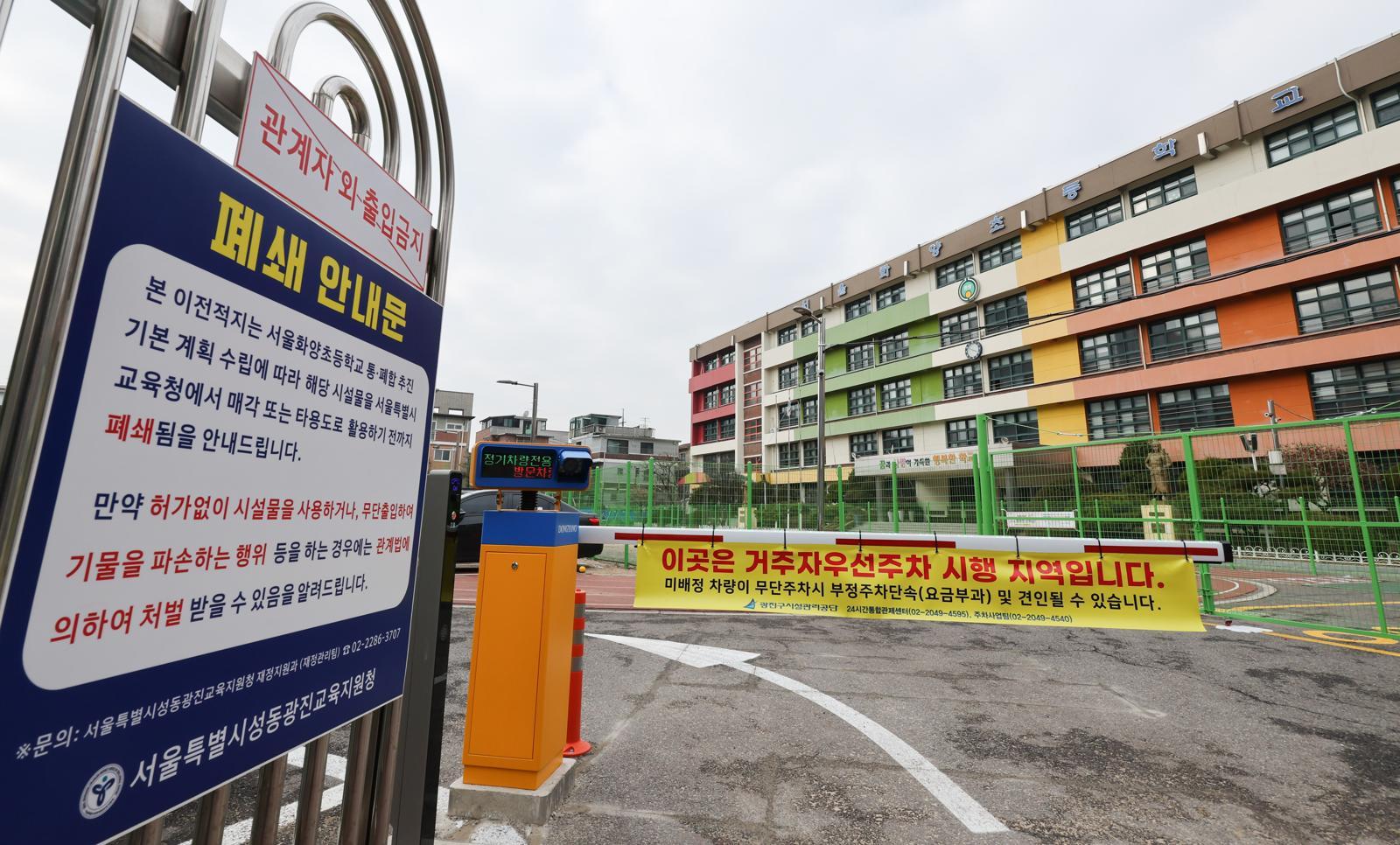학생 감소로 지난 2023년 폐교된 뒤 주차장으로 활용되고 있는 서울 광진구 서울화양초등학교. 뉴시스 |