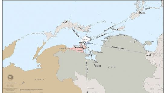 신문은 이 지도에 서울을 기준으로 평양뿐만 아니라 중국 베이징, 대만 타이베이, 필리핀 마닐라까지 거리가 각각 기재됐다고도 했다. 또 이를 두고 "동아시아에서 주한미군의 전략적 우위성을 보여준다"고 해설했다.