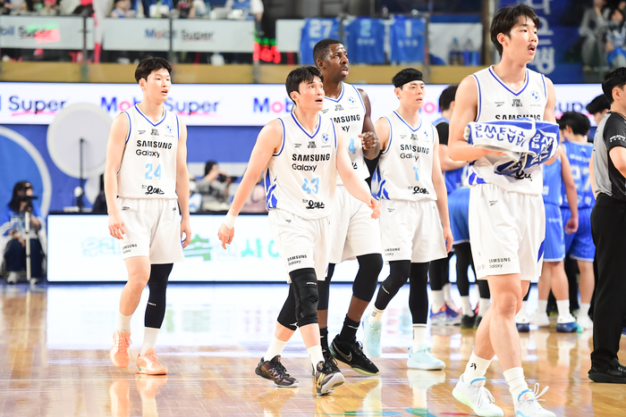 서울 삼성 선수들이 대구체육관에서 열린 2025~2026 LG전자 프로농구 대구 한국가스공사전 패배 후 코트를 빠져나가고 있다. 사진 | KBL |