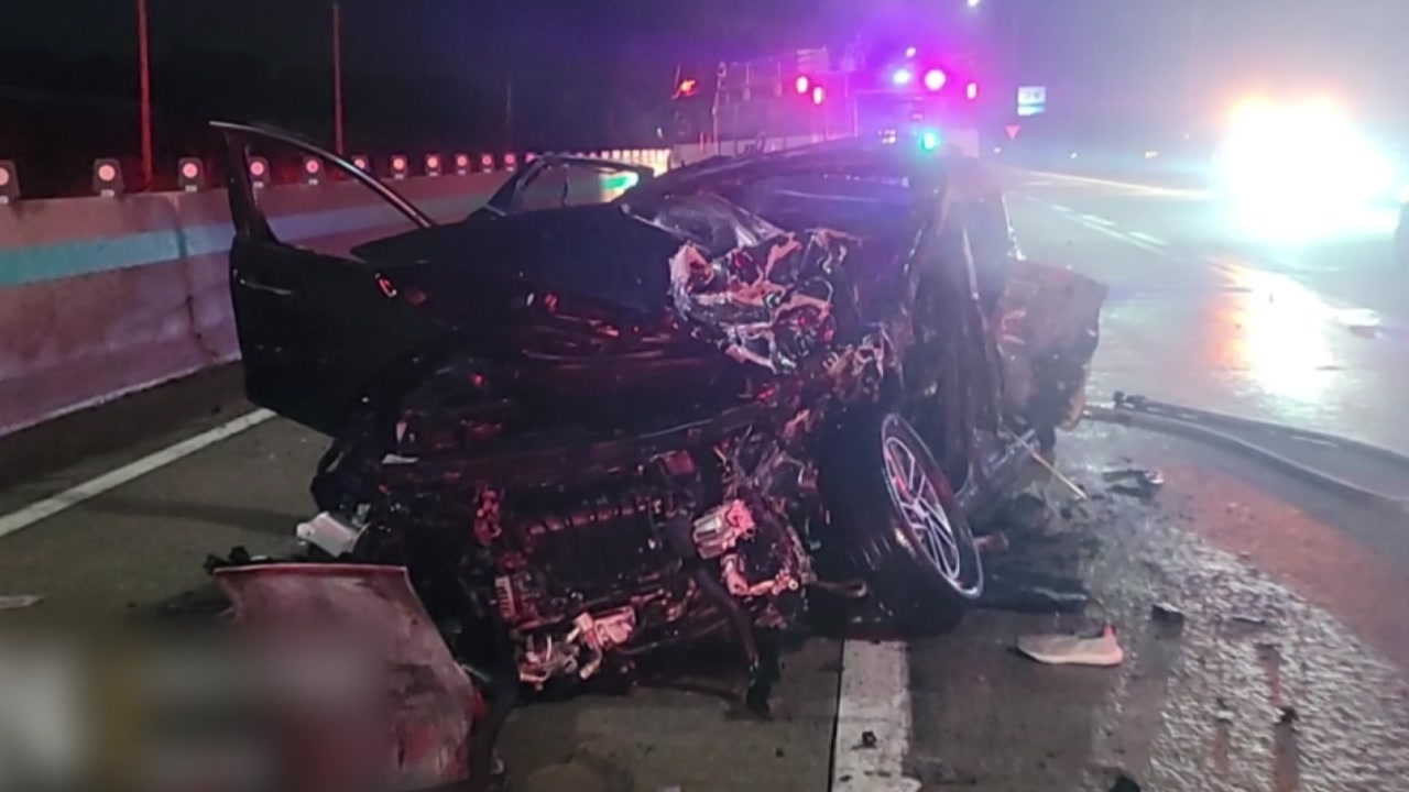 다리 아래가 바로 사고 지점입니다. 당시 경광등을 단 차 여러 대가 도로를 밝히고 있었지만, SUV 운전자는 속도를 줄이지 않은 채 수습 중이던 사고 현장을 그대로 들이받았습니다.