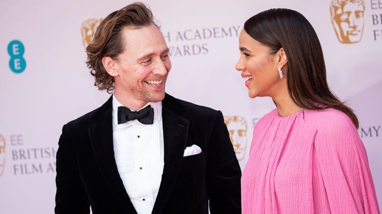 톰 히들스턴(Tom Hiddleston)과 그의 배우자 자웨 애쉬튼(Zawe Ashton)이 2022년 3월 '제75회 영국 아카데미 영화 시상식'(BAFTA) 만찬 포토월에 참석하고 있다. AFP연합 |