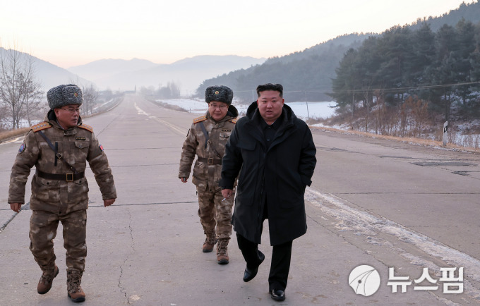 [서울=뉴스핌] 이영종 통일전문기자 = 북한 국무위원장 김정은이 4일 오전 평양 역포구역에서 이뤄진 극초음속미사일 시험발사 참관을 위해 현장을 찾았다. 왼쪽부터 장창하 미사일총국장, 김정식 노동당 군수공업부 제1부부장, 김정은. [사진=노동신문] 2026.01.05 yjlee@newspim.com |