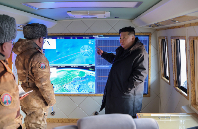 5일 북한 매체에 따르면 김 위원장은 지난 4일 극초음속미사일 발사 훈련을 참관한 자리에서 "전략적 공격수단들의 상시동원성과 그 치명성을 적수들에게 부단히 그리고 반복적으로 인식시키는 것 자체가 전쟁억제력 행사의 중요하고 효과 있는 한가지 방식"이라며 "우리의 이같은 활동은 명백히 핵전쟁억제력을 점진적으로 고도화하자는데 있다. 그것이 왜 필요한가는 최근 지정학적위기와 다단한 국제적사변들이 설명해주고 있다"고 말했다.