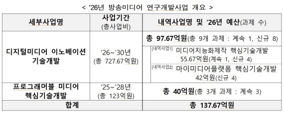 2026년 방송미디어 연구개발사업 개요. 방송미디어통신위원회 제공 |