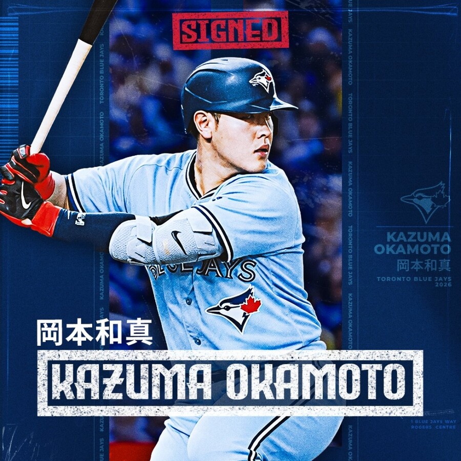 'MLB.com'은 지난 4일(한국시간) 토론토 블루제이스가 오카모토 카즈마와 계약에 합의했다는 소식을 전했다.