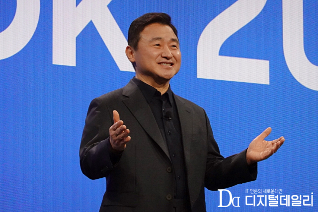 무대에 오른 노태문 삼성전자 대표이사 사장(DX부문장) "신뢰와 프라이버시는 AI 설계 단계부터 내재화돼야 한다"라며 "삼성의 AI는 제품 생태계 전반을 연결해 더 개인화된 경험을 제공하는 방향으로 진화할 것"이라고 말했다.