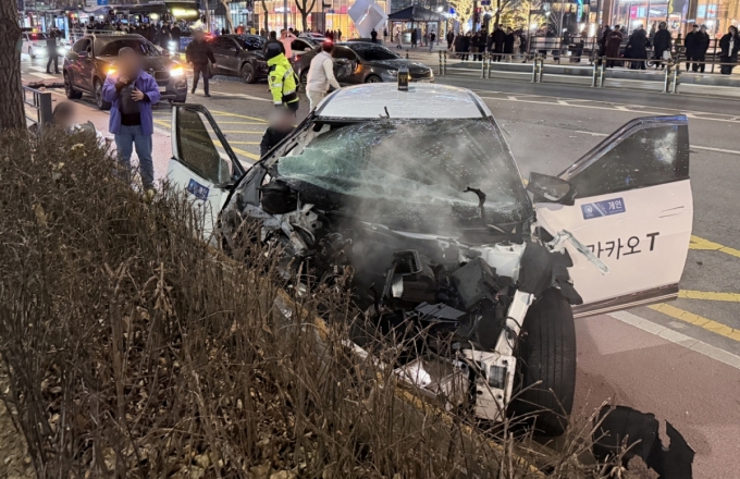 2024년 7월 발생한 국립중앙의료원 급발진 사고를 일으킨 택시 앞면 모습. 해당 택시 운전자는 '평소 다량의 처방약을 먹는다'라고 진술했다./사진=뉴시스. |