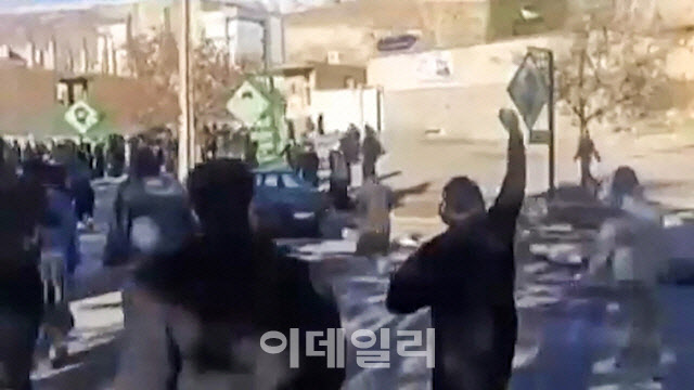 4일 이란 서부 일람주 말레크샤히의 한 거리에 경제난과 정부 무능에 항의하는 시민들이 반정부 구호를 외치며 시위를 벌이고 있다. [AFPFF 제공] |